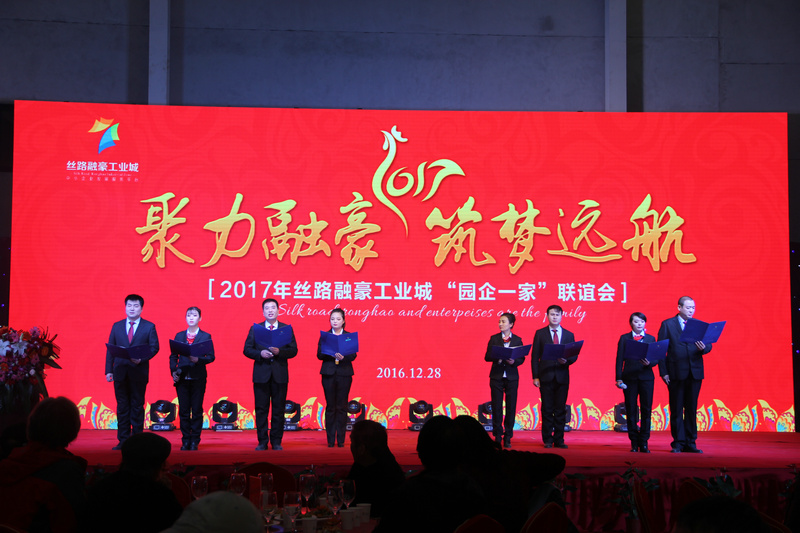 “園企一家”聯誼會是絲路融豪工業城與企業情感的匯聚,以此拉近園區和企業的距離,促進園區和諧穩定發展,同時向關注與支持絲路融豪工業城的各界友人表達由衷的謝意。2017年新春來臨之際,絲路融豪工業城恭祝各界友人:生意興隆,財源廣進!