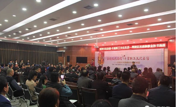 由西安市高陵區總工會、西安市公安局高陵分局主辦,絲路融豪工業城承辦的“堅持文化自信·豐富職工文化生活”——高陵區絲路融豪金秋書畫展于2020年10月29日上午10點在絲路融豪工業城服務管理中心三樓開幕。