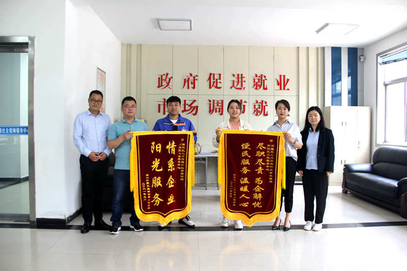 5月18日上午,絲路融豪服務(wù)管理中心經(jīng)理劉璐帶領(lǐng)入園企業(yè)代表將印有“陽光服務(wù) 情系企業(yè)”和“盡職盡責(zé)為企解憂 便民服務(wù)溫暖人心”的兩面錦旗送至高陵區(qū)人力資源和社會保障局、高陵區(qū)人社服務(wù)中心,對政府在園區(qū)服務(wù)過程中給予的傾心服務(wù)和大力支持表示感謝。
