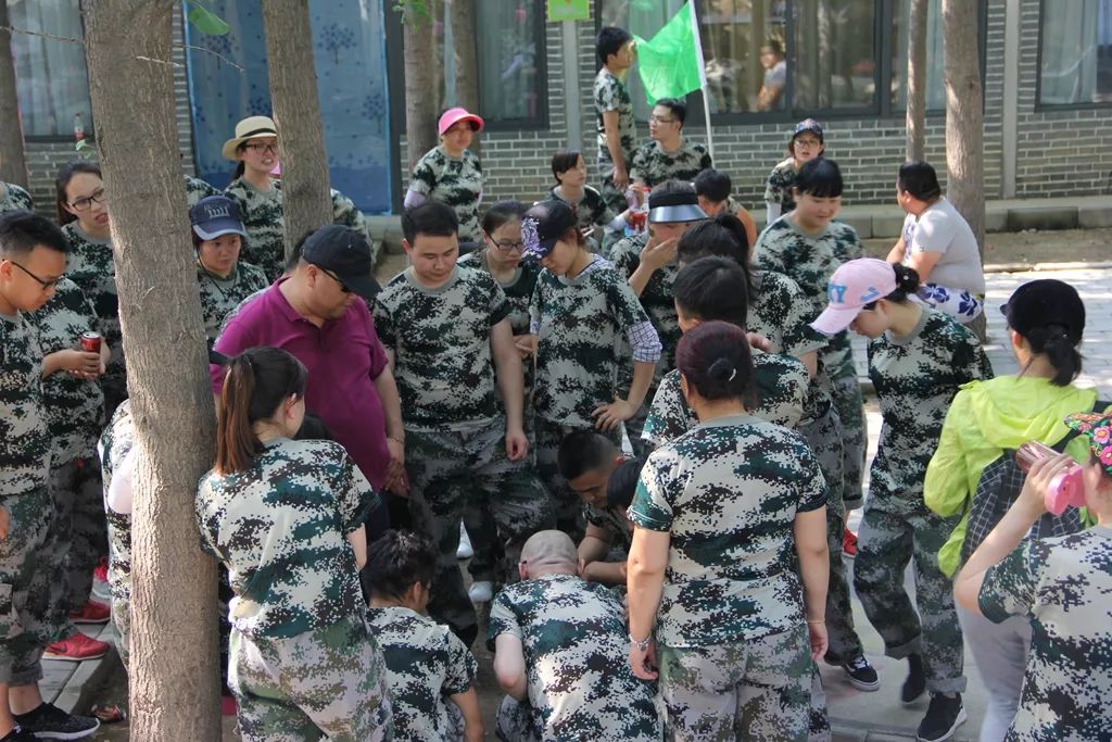 一開始,教練為大家安排了“破冰起航”項目,先是做熱身運動,肩搭肩相互為對方揉肩、捏腿、捶背,簡單的動作,也讓彼此心與心之間拉近了距離。接下來,進行團隊文化建設與展示、企業文化宣導、自我角色定位建隊、融合,團隊風采展示(隊長、隊歌、隊旗設計等):三支隊伍很快就制定出了展示各分隊才智和精神面貌的隊名、隊徽、口號、隊歌,大家齊聲唱出自己的隊歌:“相信自己,wo~;向前向前向前,我們的隊伍向太陽,照亮了融豪的方向;我們不一樣,不一樣,就是不一樣……”。呦呵,畫面感瞬間爆棚了有木有~